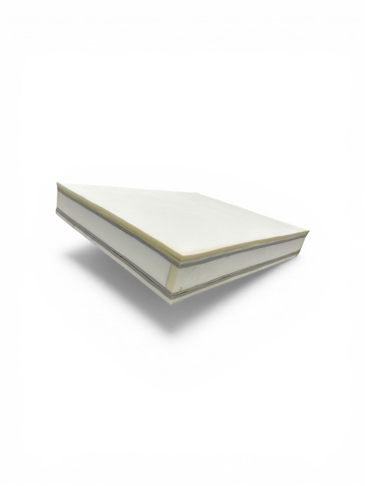 Strat de 3 cm spumă cu memorie densitate 55 kg/mc pentru adaptare la conturul corpului.